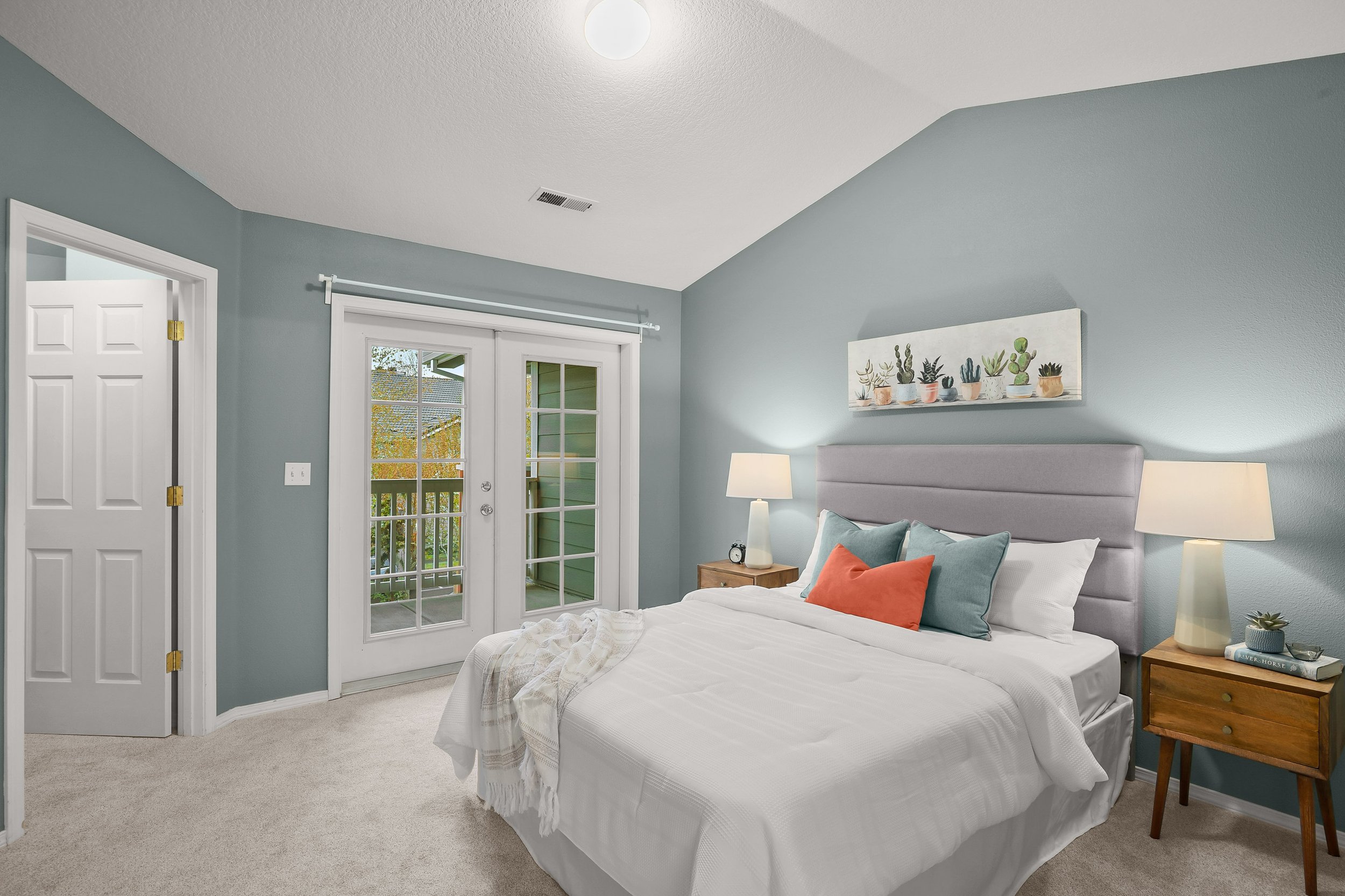 Immaculate Townhome style condo w/ main floor featuring a gas fireplace, eat-in peninsula, granite countertops, dishwasher, walk-in pantry, and dining that opens to a deck w/ gas hookup key for grilling. Vaulted primary suite w/ walk-in closet, soaker tub, and french doors opening to a covered front patio you will never want to leave! Secondary vaulted bedroom or home office w/ ensuite. Fresh paint, new carpet + oversized two car garage! Blocks to all the happenings + HOA includes gym/pool!